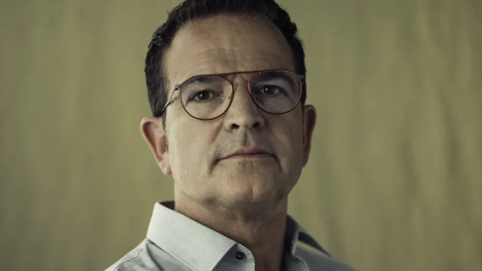 Older man with HOYA lenses wearing beige shirt